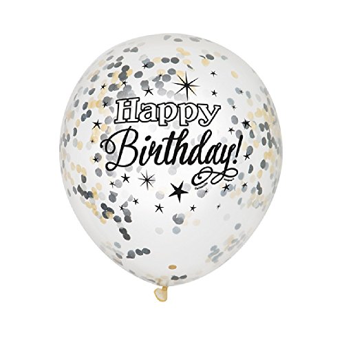 Unique Party 58285 - Ballons de Baudruche Confettis - 30 cm - Fête d'Anniversaire à thème Scintillante Argentée - Confettis de Couleur Noir, Argent et Or - Paquet de 6