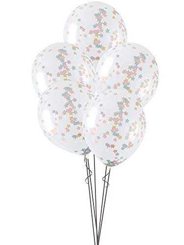 Unique Party 72425 - Ballons de Baudruche Confettis - 16 cm - Confettis en forme d'Étoile Rose, Bleue et Dorée - Paquet de 5