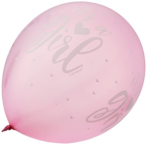 Unique Party 56114 - Ballons de Baudruche Nacré - 30 cm - "It's A Girl" Baby Shower - Paquet de 5 - Rose