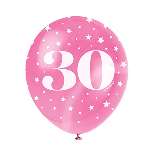 Unique Party 56095 - Ballons de Baudruche Nacré - 30 cm - Numéro 30 Anniversaire - Assortiment de 5