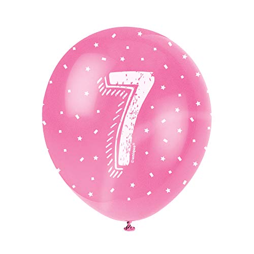 Unique Party 56089 - Ballons de Baudruche Nacré - 30 cm - Numéro 7 Anniversaire - Assortiment de 5