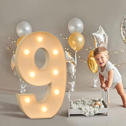 Numéros Lumineux De Chapiteau De 3 Pieds, Cadre Prédécoupé Numéro 0-9, Chiffres en Mosaïque Géants Éclairés par LED Blanc Chaud for Ballons, Anniversaire, Décoration (Color : Number 9, Size : 100cm