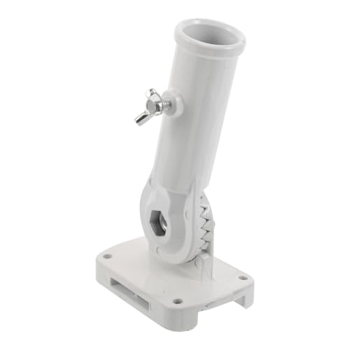 Parliky Support de Mât de Drapeau en Alliage D’Aluminium Réglable Base Robuste Blanche Résistante aux Intempéries Fixation Inclinée pour Mât de Drapeau Extérieur Jardin et Balustrade