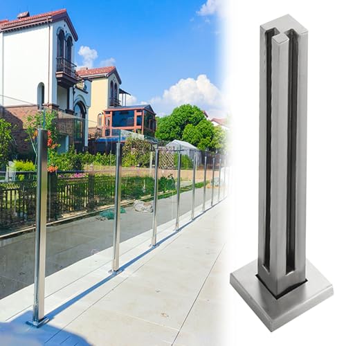 Système de poteaux de balustrade moderne – Kit de balustrade intérieur/extérieur avec pinces carrées pour panneaux de verre – Parfait pour balcon, escalier, terrasse, garde-corps et clôture (poteau