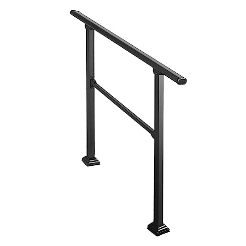 Balustrade Porche,rampe D'escalier, Convient À 1 Ou 5 Marches For Rampe D'escalier Extérieur, Main Courante En Fer Forgé Noir, Mains Courantes Transition For Marches En Béton Ou Escaliers En Bois ( Co