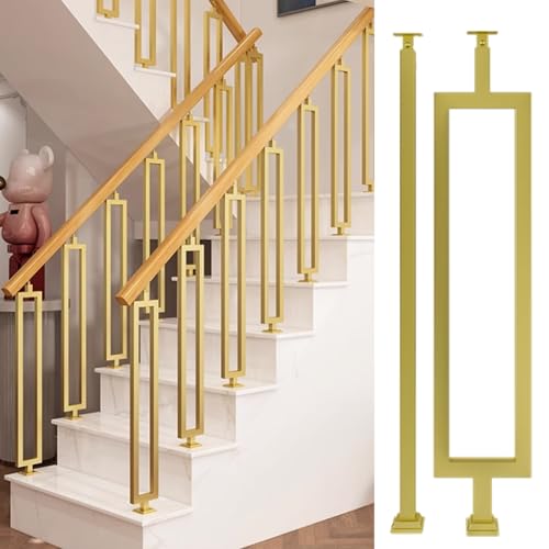 LMMIAOZ Balustrade en Fer forgé pour escaliers extérieurs (1 à 3 marches), Balustrade en Bois pour marches en béton, Balustrade de Porche dorée (90 cm x 90 cm).