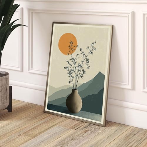 LMYCHENG Tableau minimaliste, Vase en bambou, Toile murale, Impression botanique moderne, Affiches de paysage naturel, Décoration intérieure (20x30cm/Cadre intérieur)