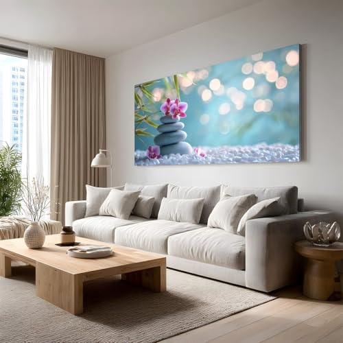Tableau Decoration Murale Zen Phalaenopsis Photo Artistique 50x100cm Sans Cadre Japonais Bambou Décoration Murale pour Salon et Chambre Adulte Meditation Pierre
