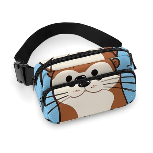 Sac banane pour homme et femme avec sangle réglable Bleu/beige Motif carré Pour tous les jours, Loutre mignonne., 20x13cm