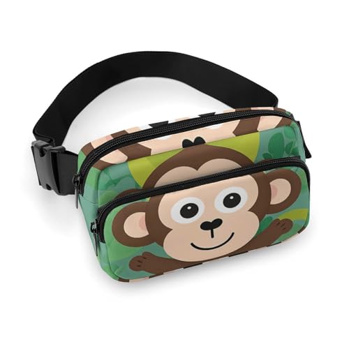 Sac banane pour homme et femme avec sangle réglable Bleu/beige Motif carré Pour tous les jours, Singe de dessin animé., 20x13cm