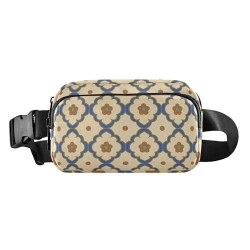 Sac banane pour homme et femme avec sangle réglable Bleu/beige Motif carré Pour tous les jours, Poisson volant, 20x13cm