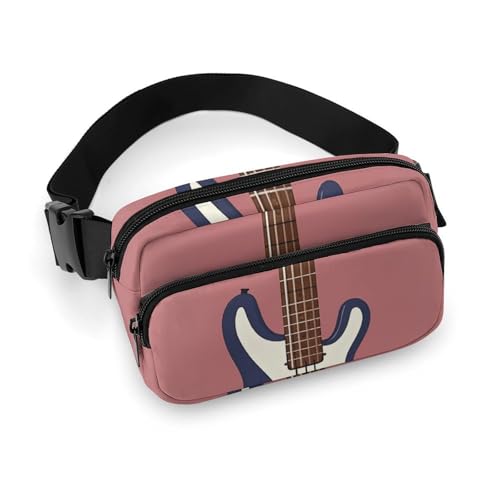 Sac banane pour homme et femme avec sangle réglable Bleu/beige Motif carré Pour tous les jours, Guitare basse, instruments de musique, 20x13cm