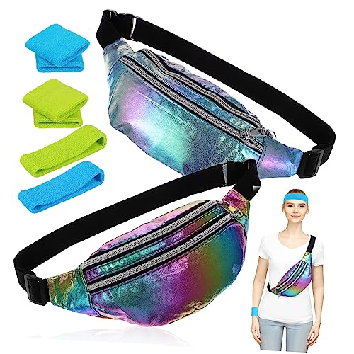 Millya Sac banane holographique laser pour femme avec ceinture de course à pied, Vert, Taille unique