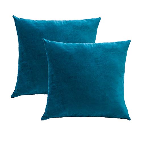 Stellhome Lot de 2 housses de coussin carrées en velours pour lit, canapé, banc, 60 x 60 cm, bleu vert