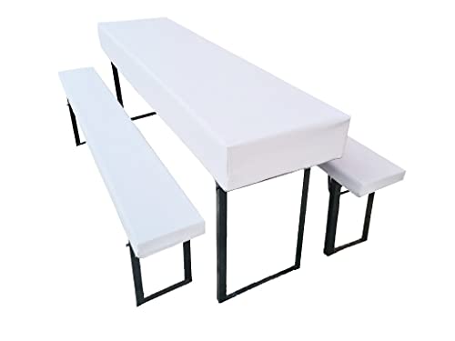 Lemos Home Lot de 3 Coussins pour Tente à bière Comprenant 1 Nappe et 2 Housses de Banc - Taille et Couleurs au Choix (110 x 60 cm, Blanc)