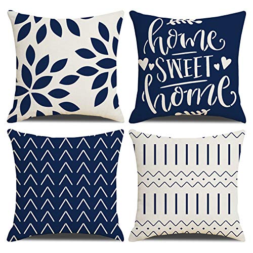 Homefeelzydys Lot de 4 Housses de Coussin carrées pour extérieur, terrasse, Jardin, Banc, Salon, canapé, décoration Rustique - 60 x 60 cm - Bleu Marine