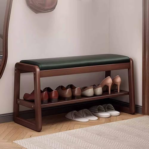 WQPMNYG Étagère à Chaussures à 2 Niveaux en Bambou, Banc rembourré en Cuir PU, étagère à Chaussures pour entrée, Couloir, Salon