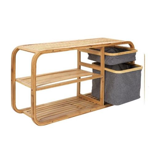 Banc d'entrée en bambou avec 1 étagère de rangement - Bois et Gris