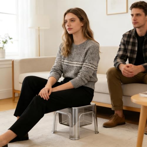Petit Tabouret De Douche – Acrylique Épais Transparent, Chaise Portable De Salle De Bain Avec Étagère De Rangement | Banc Bas Transparent, Compact Et Étanche, Pour Coin De Cuisine, Maison, Chevet, Van