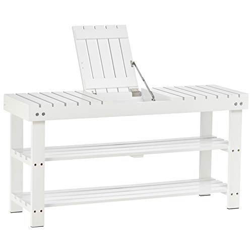 HOMCOM Banc à Chaussures, Meuble à Chaussures en Bois à 3 Niveaux avec étagère de Rangement et Compartiment caché, Banc d'entrée pour Couloir, Chambre, 90 x 29 x 45 cm, Blanc