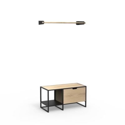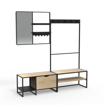 Meuble d'entrée en métal noir et bois 1 penderie 1 banc de rangement l. 100 cm Homesight Wilko