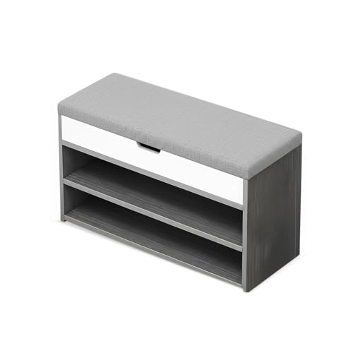 Wintem - Meuble à Chaussures à 2 Niveaux avec Assise Rabattable en Bois, Banc à Chaussures d'entrée rembourré, Gain de Place avec Compartiment caché