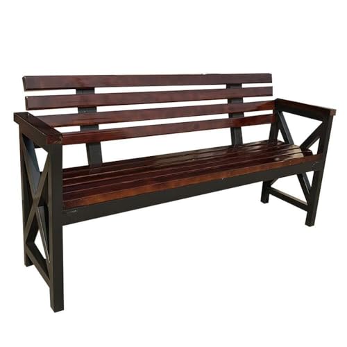 Banc de Jardin HWC-F97, Banc du Parc, Banquette en Bois, Fonte, 3 Places, 122cm, 22kg - Marron Clair