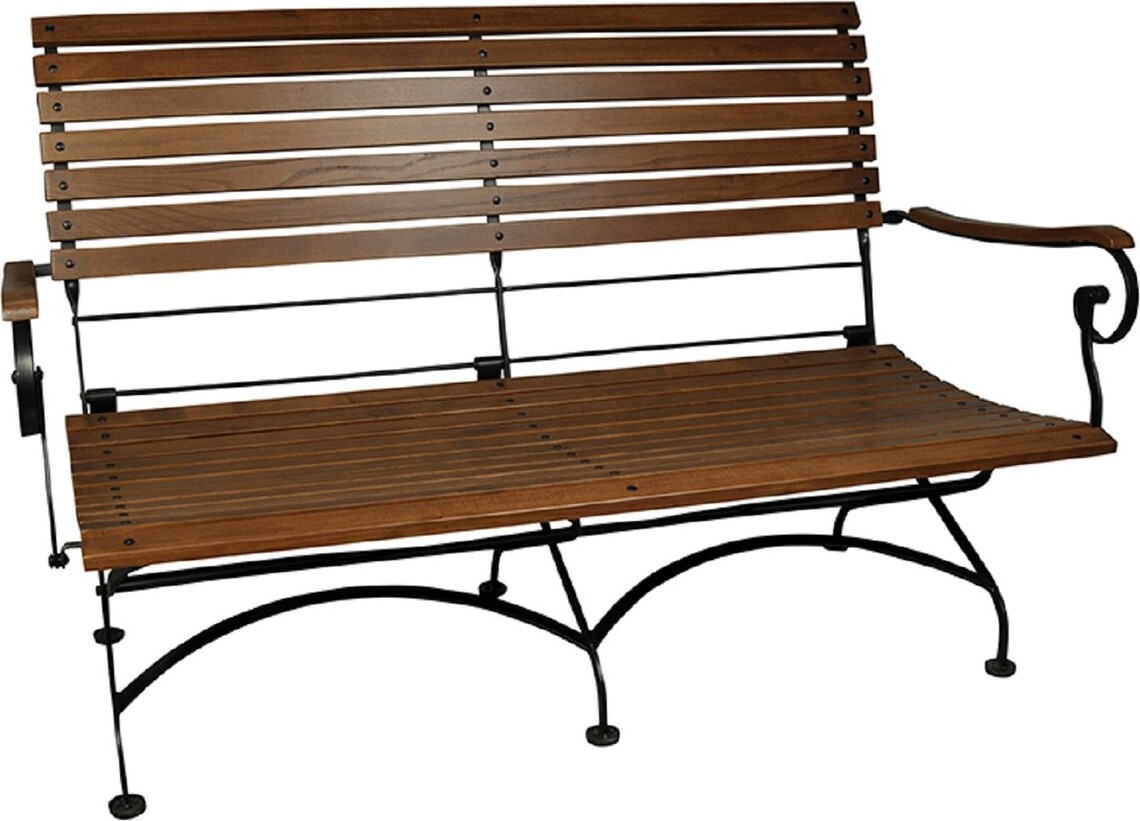 Casa Padrino Banc de jardin Art Nouveau Brun foncé / Noir 150 x 62 x H. 96 cm - Banc de jardin pliable - Meubles de jardin en bois et fer - Meubles de jardin baroques et Art Nouveau