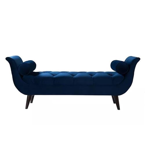 Macabane Banc en velours bleu clair capitonné structure métal noir