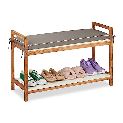 Relaxdays Banc, Range-Chaussures avec Assise rembourrée, Coussin Amovible, HxLxP : 55 x 90 x 34 cm, Bois, coloré