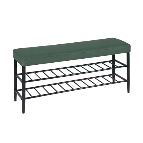 Banc à Chaussures Relaxdays, Assise rembourrée en Simili Cuir, 2 étagères, pour 8 Paires, H x L x P 50x100x30 cm, Vert