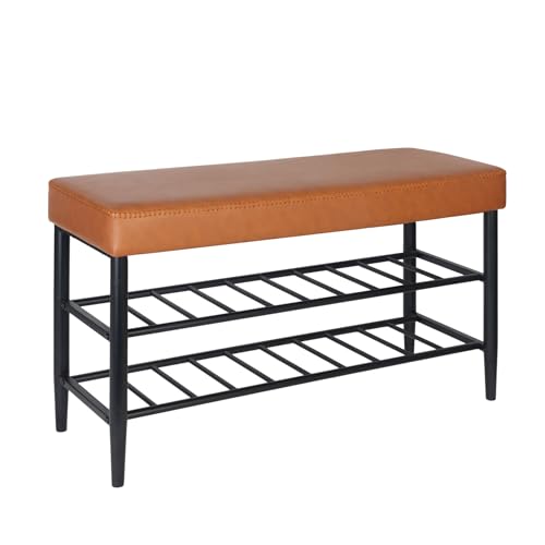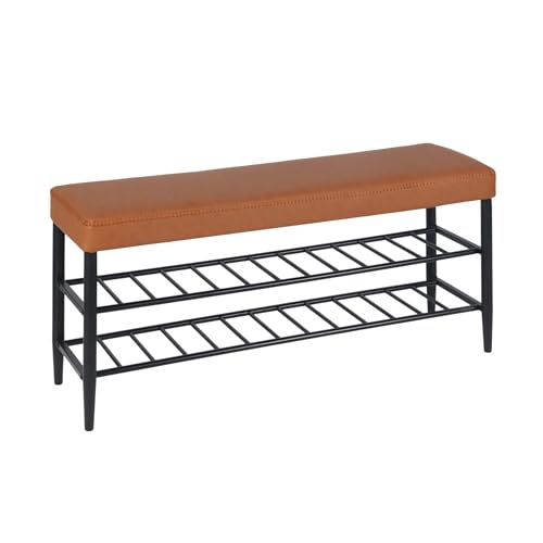 Banc à Chaussures Relaxdays, Assise rembourrée en Simili Cuir, 2 étagères pour 8 Paires, H x L x P 50x100x30 cm, Marron