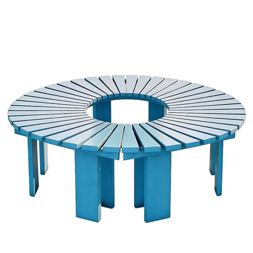 Générique Bancs de Jardin en Bois | Banc d'arbre incurvé pour terrasse, pelouse, Cour, Parc, Porche, Jardin | Banc d'arbre décoratif Circulaire (Bleu, Rond)