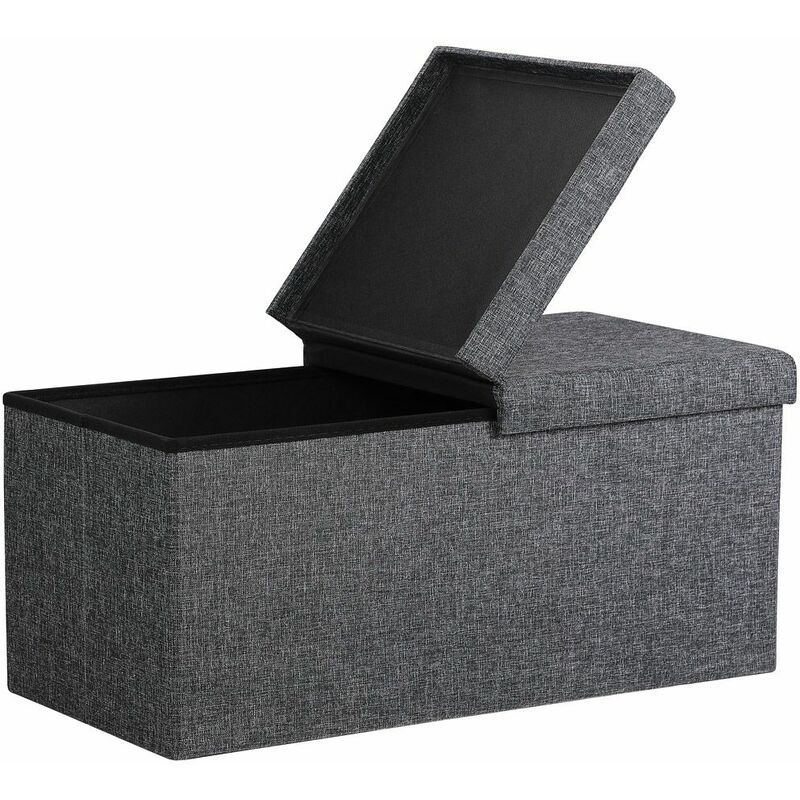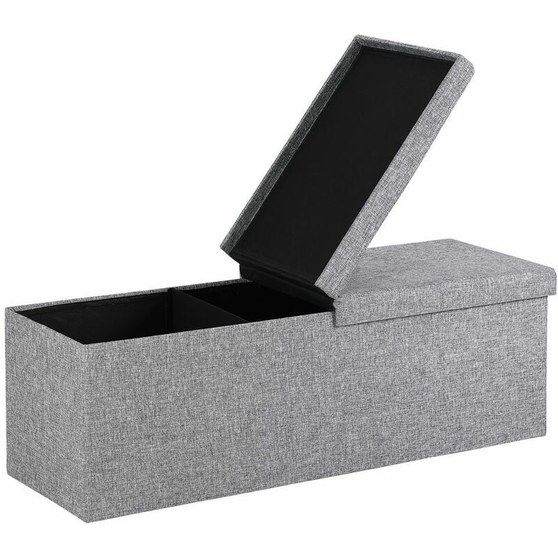Songmics - Pouf, Coffre de Rangement, Tabouret avec Repose-Pieds, Pliable, Banc avec Rangement, 38 x 110 x 40 cm, pour Salon, Chambre, Gris Foncé