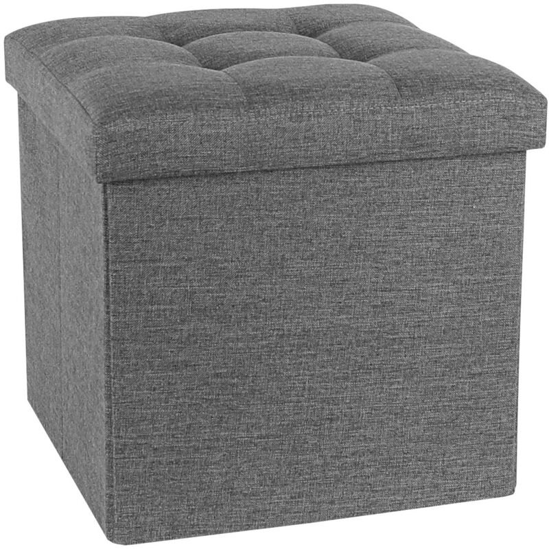 Songmics - Pouf, Coffre de Rangement, Tabouret avec Repose-Pieds, Pliable, Banc avec Rangement, 32 x 40 x 33,5 cm, pour Salon, Chambre, Gris Foncé