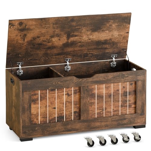 Mondeer Coffre de Rangement, Banc de Rangement avec 4 Roues et 2 Charnières de Sécurité, 40 x 100 x 49 cm, pour Couloir Chambre Salon, Marron Rustique