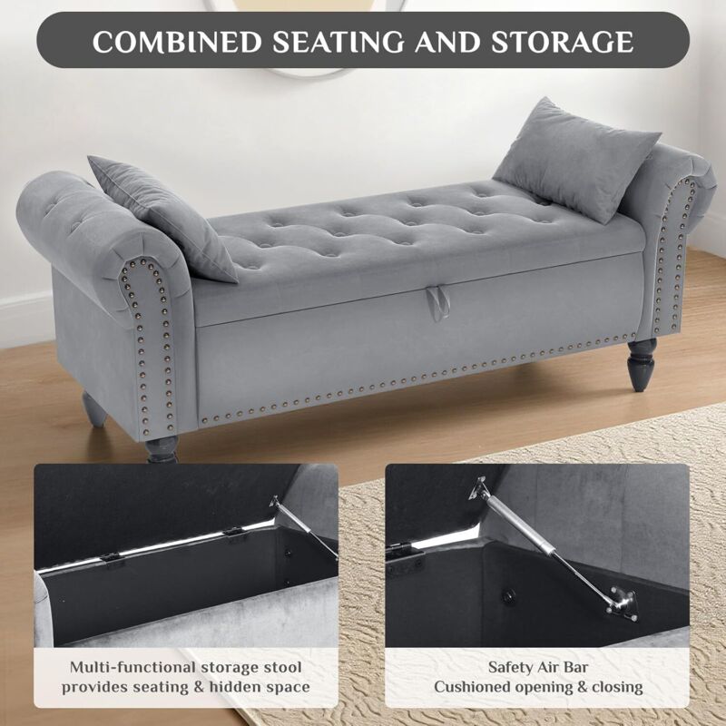 Banc de rangement pour salon, pouf de lit avec coffre de rangement au pied du lit, banc rembourré, banc à chaussures avec accoudoirs pour chambre,
