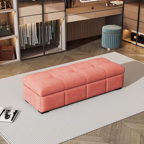Banc coffre, banc d’entrée avec rangement,120 x 40 cm, velours rose, pieds métal