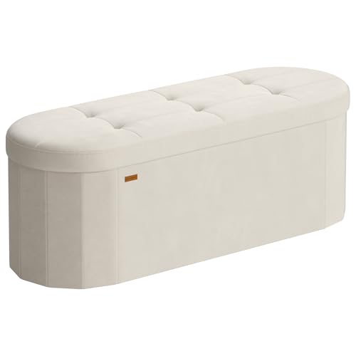 SONGMICS Banc de Rangement, Coffre, Repose-Pieds Pliable, Montage Facile, pour Salon, Entrée, Chambre, Tissu Velours, Capacité 110 L, 38 x 110 x 38 cm, Blanc Crème LSF297LH01