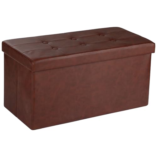 COSYLAND Pouf de Rangement Pliable en Similicuir – Ottoman avec Couvercle 76x38x38 cm, Banc Coffre Repose-Pieds 200 kg, Tabouret de Salon avec Espace de Stockage Caché – Rouge Brun
