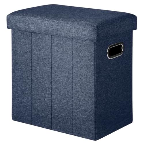 COSYLAND Pouf de Rangement Pliable en Lin – Ottoman avec Couvercle 42x27x42 cm, Banc Coffre Repose-Pieds 150 kg, Tabouret de Salon avec Espace de Stockage Caché – Bleu Marine