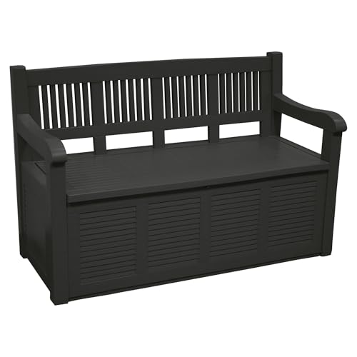 Keter Banc/Coffre de Jardin, Gris Anthracite, 140 x 60 x 84 cm & Bas Noir Armoire à 2 étagères réglables réalisée en résine Detroit Basse 65 x 45 x 97 cm Ecommerce Pack