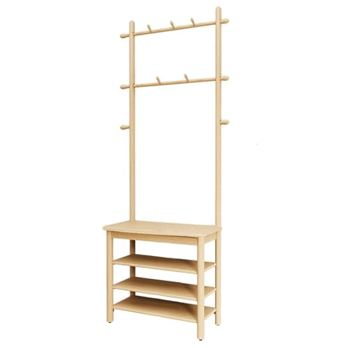 Porte-Manteau d'entrée avec Rangement pour Chaussures, 2 rangées de Crochets et 3 étagères, Banc de Couloir autoportant avec Meuble à Chaussures (Jaune 60 cm 24 po)