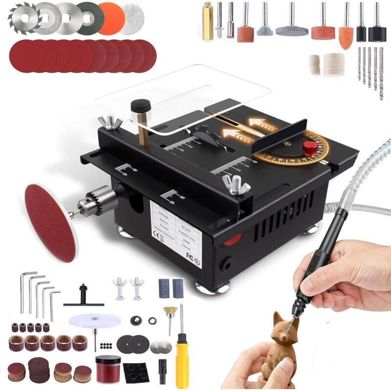 Roboraty 96w Mini Scie à Table Hobby pour Modélisme, 7 Vitesses Réglables Bureau Travail du Bois Petit Banc Scie Artisanat Bois Alliage D'aluminium Acrylique Machine de Découpe
