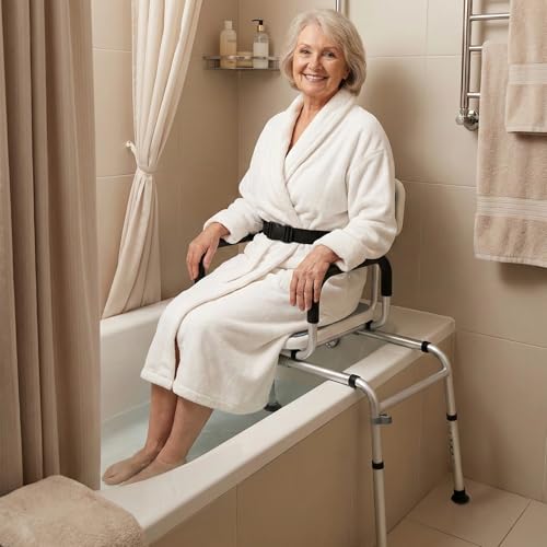 Pepe Mobility Banc Baignoire Adulte avec Accoudoir Rembourré, Tabouret de Baignoire Antidérapant Réglable en Hauteur, Siège de Bain pour Personnes Âgées