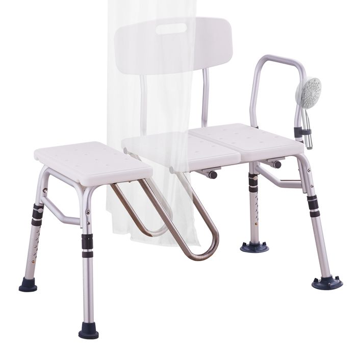 Careboda Banc de transfert de baignoire et chaise de douche pour baignoire, banc de douche réglable et siège de bain avec dossier et support de bras souple pour personnes âgées et personnes âgées