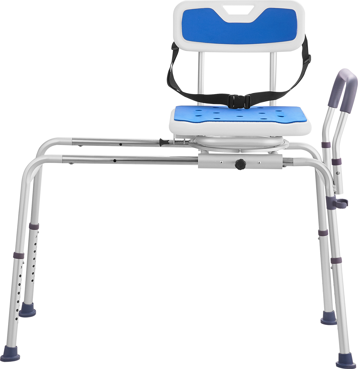 VEVOR Banc de transfert pour baignoire avec fonction glissière et siège pivotant à 360 degrés, banc de transfert pour baignoire réglable en hauteur avec accoudoir et ceinture de sécurité, chaise de douche pivotante antidérapante
