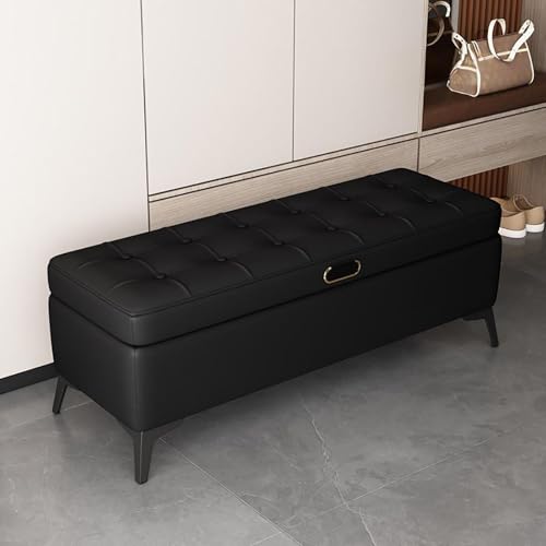 Tabouret Ottoman de Rangement élégant pour Chambre et Salon, Repose-Pieds en Mousse Souple pour entrée et Dressing, Banc à Chaussures Polyvalent Noir