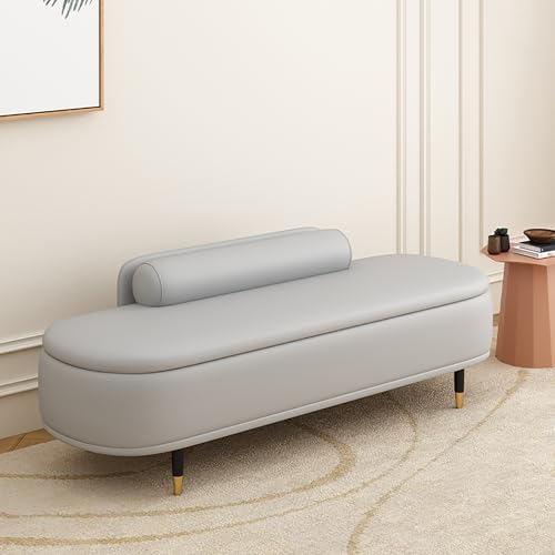 Banc Sto moderne rembourré en cuir synthétique avec dossier en bois massif pour chambre à coucher, salon, entrée, dressing, bureau (60 x 45 x 42 cm, gris clair)