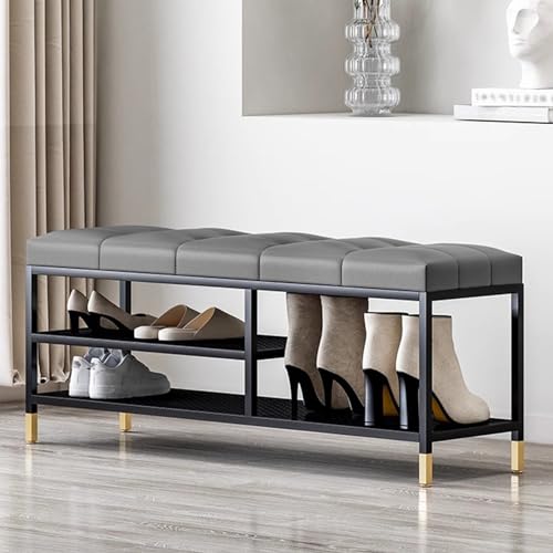 Banc de Rangement Moderne, étagère à Chaussures rembourrée, Structure en Bois Massif, Repose-Pieds en Cuir synthétique pour Chambre, Salon, Couloir, Dressing (80x40x40CM Gris Clair)